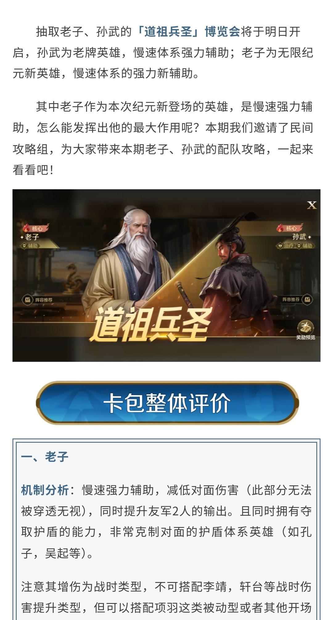 攻略分享丨「道祖兵圣」博览会:老子、孙武配队攻略分享