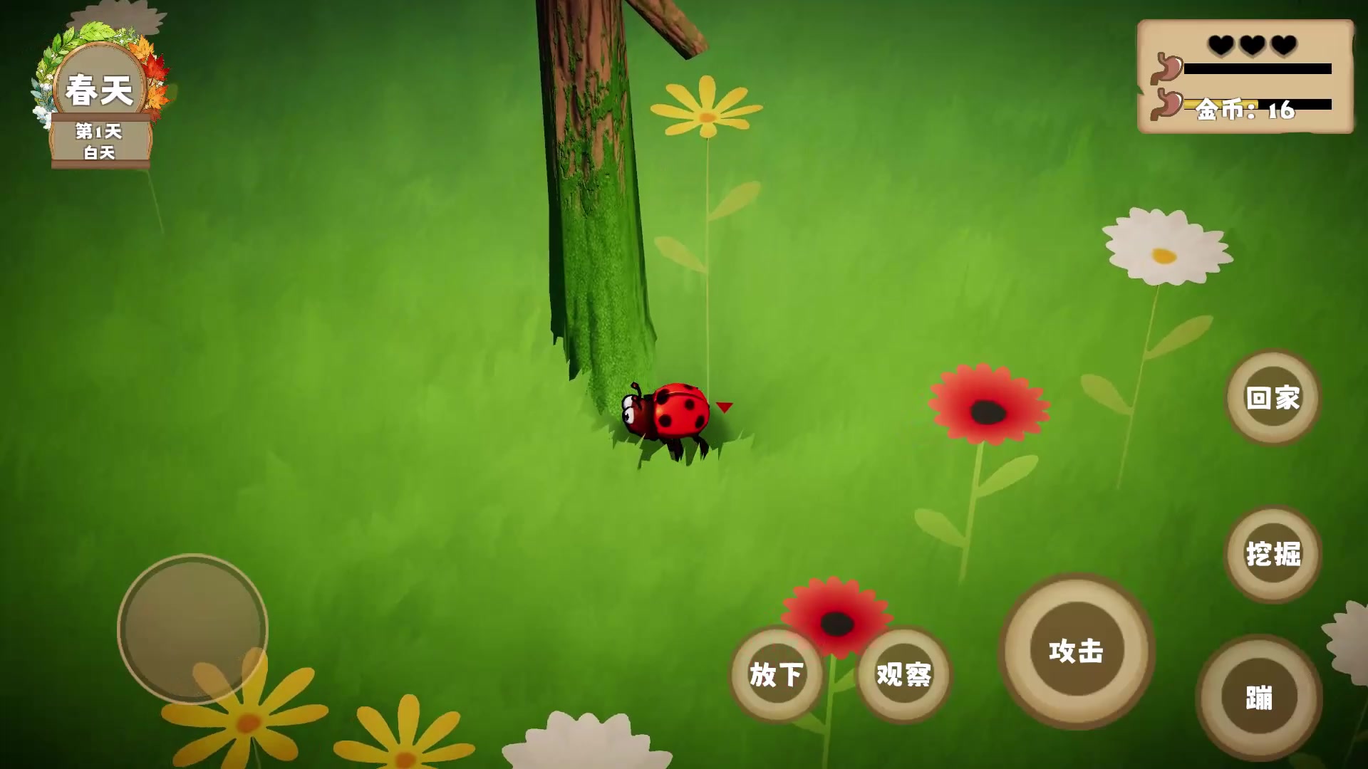Hi,伙伴们好,好忙碌的一天,我今天增加了有趣的事情,就是背,我不希望用传统的背包过于呆板,所以我用自己想象的方式让我们的小瓢虫拿起来一些物体,这样看起来更生动有趣,这也是我这款游戏最重要的组成部分,就是可以拿很多东西在身体上,背起来走路,当然我会约束数量,也不会因为物品过多造成移动减缓,这样可以会给玩家带来焦虑,这还是一款轻松向的手机游戏,所以不会太过真实,轻松体验为主要方向,玩家在获取食物的同时一定要有一份小惊喜,目前我只完成了苹果,后面可能会加入其他更抗住饥饿的物品,但是从树上掉落一定不光只有食物,还有就是我今天完成的小鸟,我觉得这个很重要所以我必须加入她来,后续我希望她可以帮助我们赶走敌人,有很多叽叽喳喳的小鸟跳来跳去帮助我们赶走敌人,我个人觉得这是一个很有趣的画面,所以我今天必须加入她,我必须要让她不停的眨眼,这很重要!!!我希望她有一个无辜的表情,当然她不会成长,我也不会做太多复杂的成长要素,她就是单纯来帮助我们,最后她可能会离开,这个小鸟的出现一定不是百分百会有运气成分,我是想这样设计,好了伙伴们,我们来简单欣赏一下食物和小鸟在游戏中大致的体现,有不足地方还请伙伴们谅解,我们继续ing(日志我想到哪里写到哪里很多不足请伙伴们谅解感谢感谢感谢)热爱自然
