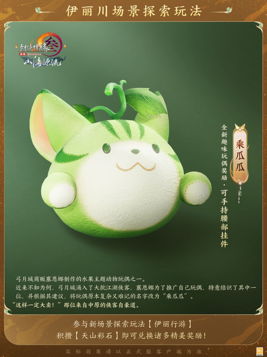 江湖路上不止侠气豪情,还有萌意随行!做生意主打一个人脉,热情的弓月城玩偶商结合所见所闻,为江湖大侠们特制一批水果主题动物玩偶,每个背后都有“高人”指点!