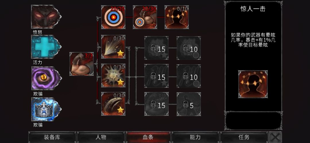 血条:优先点出十点初始聚气,然后魔法加成,盾点满后,补出暴击和爆伤,再点闪避和血量;