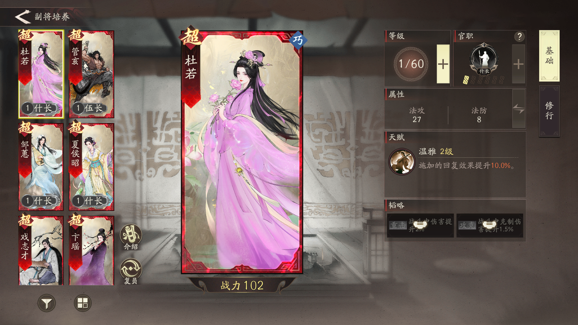 【图文资讯】培养-副将总览(喜相迎测试-五测)