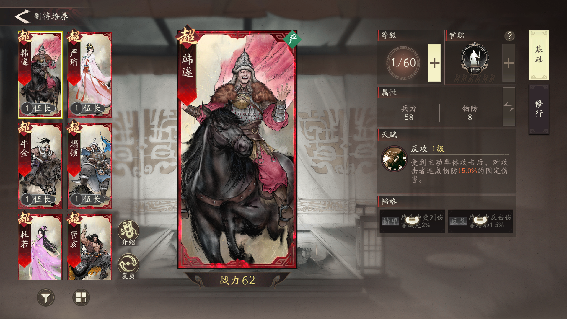 2.官职无法重置,部分副将由于已升官无法重置这部分数值,