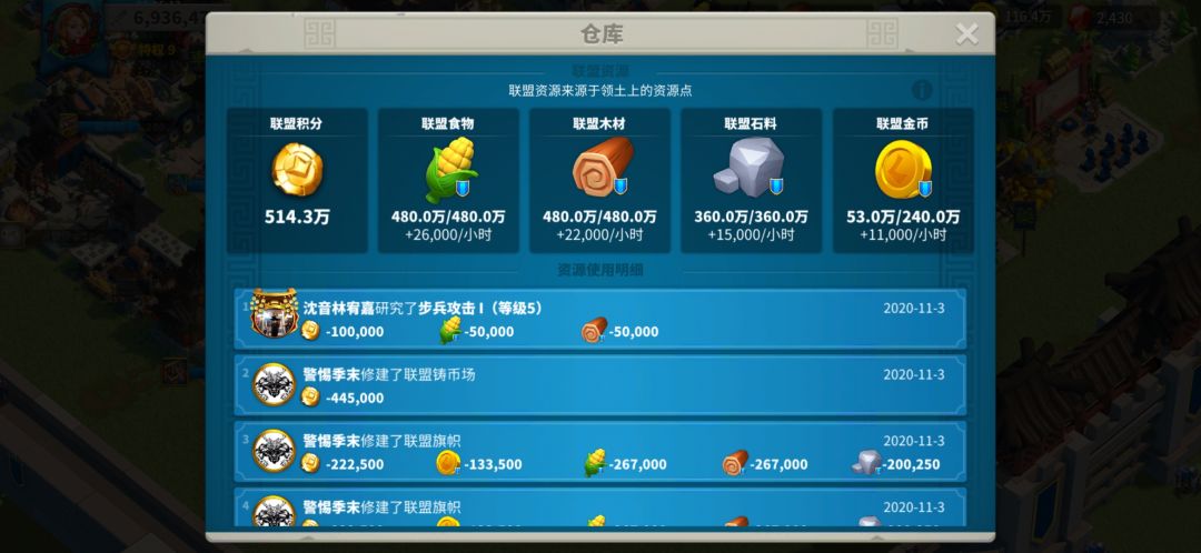 几乎所有的联盟都经常面临的缺金币的问题。而其他几样几乎是不会缺的。