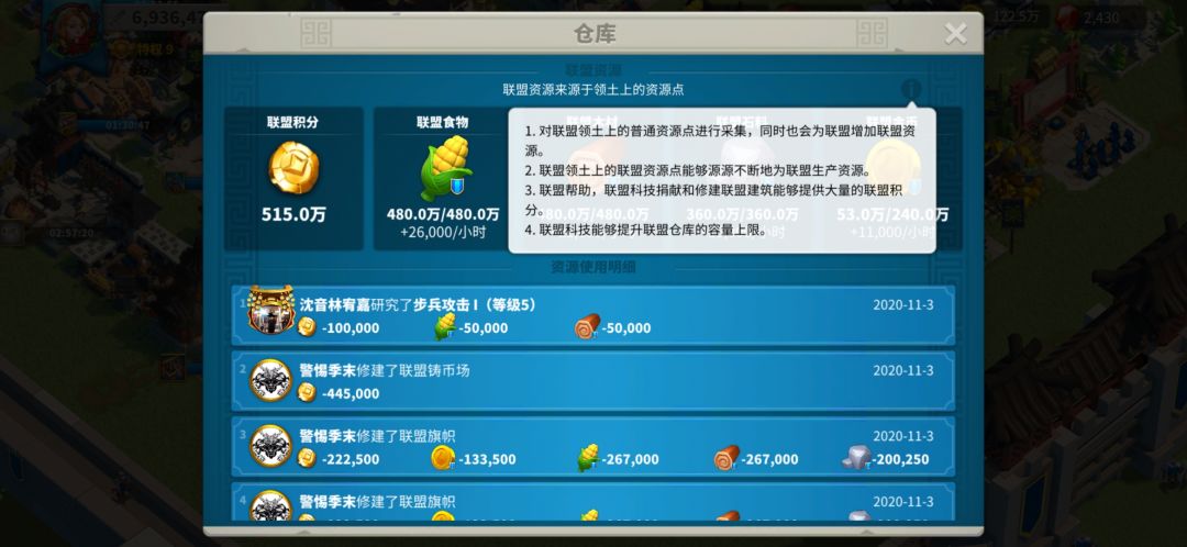 因为联盟金币的增加只有两个途径,一个是联盟成员采集领地内的金矿,一个是占领的联盟矿自动的增加。