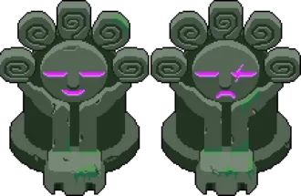 唯二的双boss之一,绝对的元气大害,这两条龙的输出手段包括火焰子弹追踪子弹激光还有场景岩浆,而且两条龙跑的极快,追都追不上,直接断绝近战可能,这两条龙实际上配合的还非常好,小黑龙放火,限制走位耗死玩家,小白龙下蛋,蛋会爆炸炸死玩家,再结合各种追踪子弹和激光,直接让玩家避无可避原地等死,就算有火盾克制也不好打小白龙,总体上无火盾元气大害水平,有火盾顶级boss水平,总体元气大害。