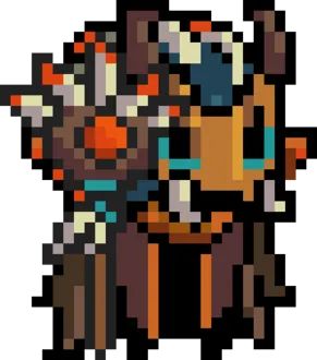 和大巫师一样是元气古早年代的boss,虽然有把宝剑但是完全不会近战,十分喜欢跑打,还喜欢拐来拐去的,就光会跑打这点已经比拉爆了的那群废物强多了,个人认为弹幕比暗黑大骑士还要密,但是更好打一点,可以一直依靠掩体苟着激情对射或者直接拿刀追着打它,综合给NPC。