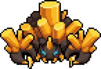 水晶巨蟹的究极强化plus升级版,不至于强化了一亿倍也少说有一万倍了,在保留碰撞伤害和子弹的同时,增加了火属性蟹刺和定点蟹刺,连碰两次蟹刺可以直接重开了,一村第二强的boss,理论上打的话要刺盾和火盾,然而一村要同时有这两个很难,打法也和晶蟹一样,即苟在掩体和boss对射,综合给人上人。