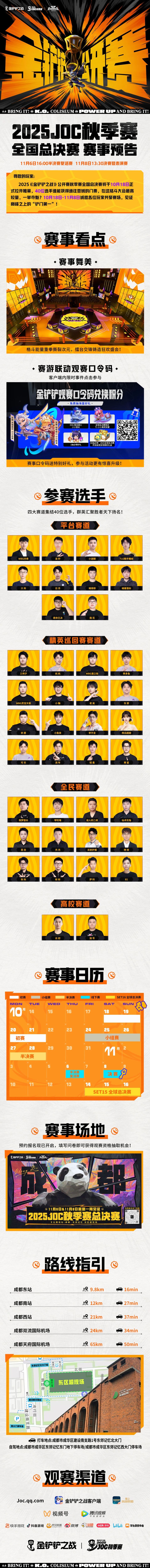2025JOC秋季赛全国总决赛将于10月18日正式拉开帷幕,40位顶尖选手热血集结,究竟谁能脱颖而出,获得通往蓉城的门票,在这场格斗大会的最高较量中一举夺魁,登顶冠军宝座?