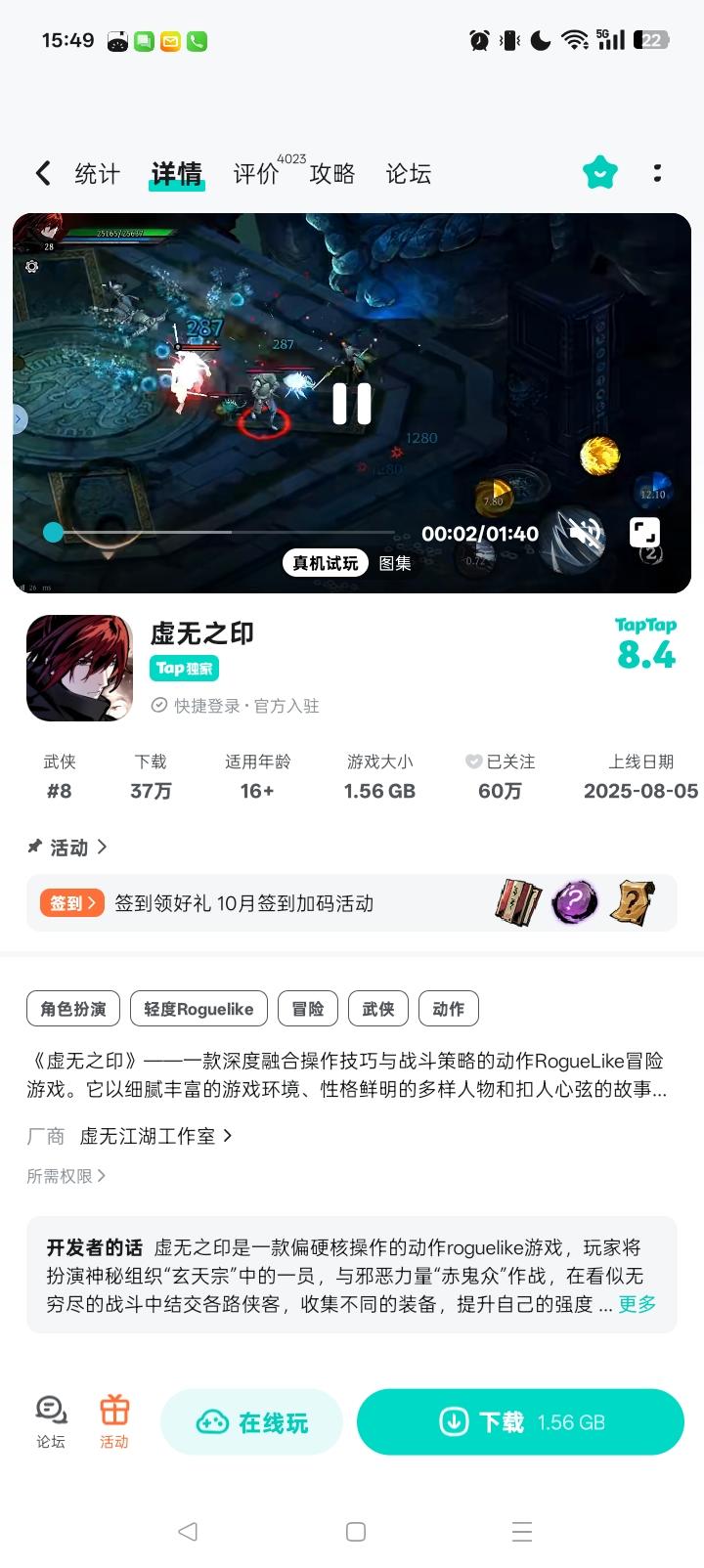 #同类游戏《刃境》,去年十二月份出的,如今已经面临停服,八月份出的虚无之印,一直不温不火,刚开服的炸服,导致评分下跌,再加上这类游戏普遍有一个共同特征,就是单一玩法太无聊,刷子游戏