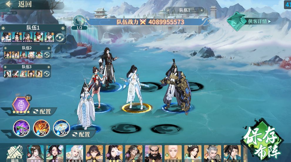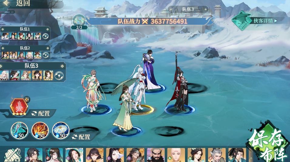 群侠需要三队,队伍里的侠客,阵法不能重复使用