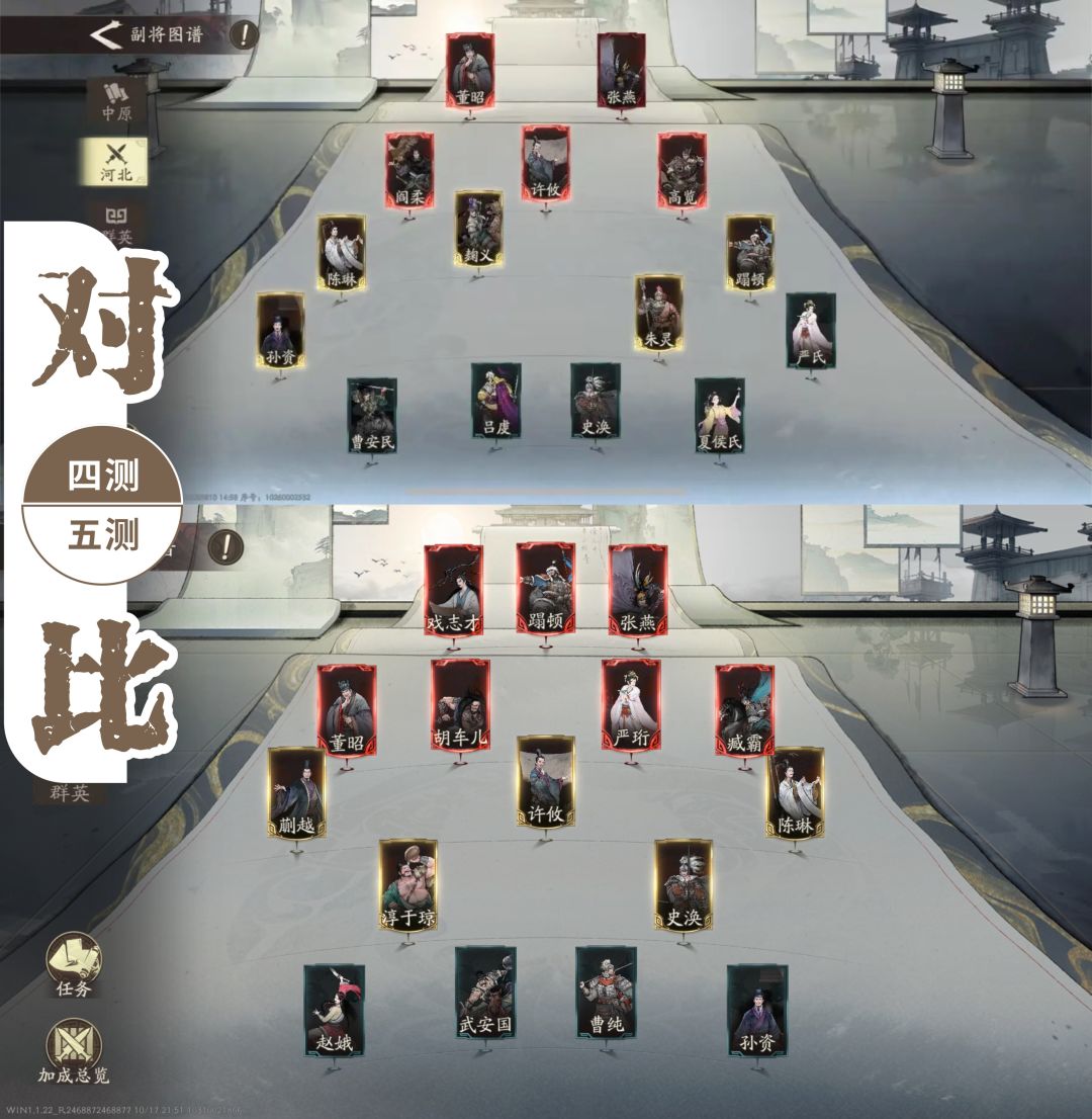 (注:我五测的副将都是重置等级后再截图,而四测的截图我并没有留意到这个细节)