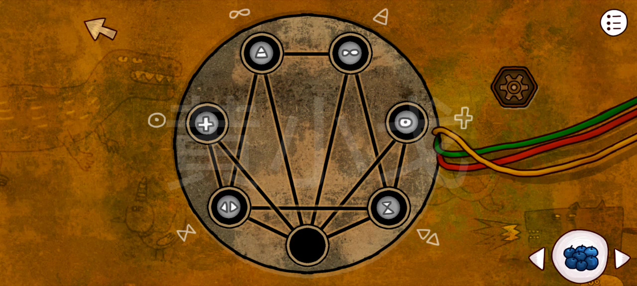 16.点击地上的机关,根据[小屋-二楼]黑板上的图案,调整机关上绿点的位置