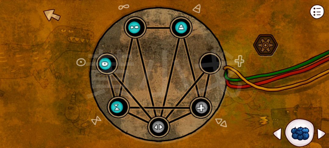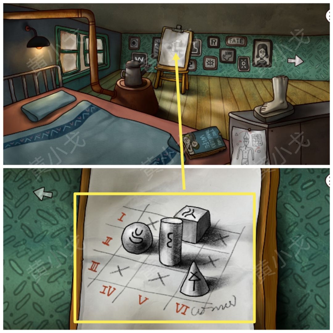 16.点击地上的机关,根据[小屋-二楼]黑板上的图案,调整机关上绿点的位置