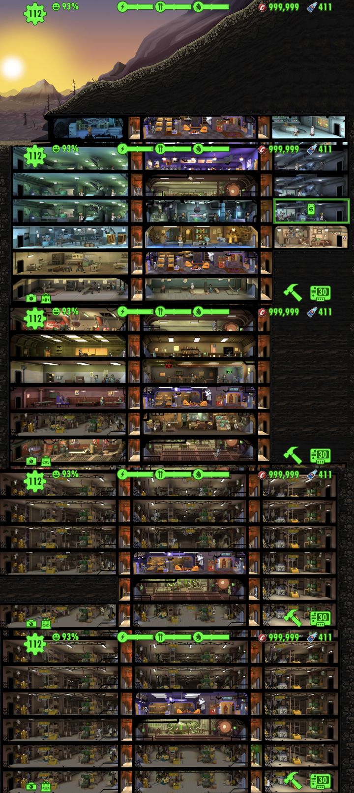 房间安排,一层我直接空出来了,在没有充分余量的大规模生产模式下,我觉得一层安排食堂,有突发情况会很影响生产,所以直接安排宿舍空出来,大致2-6是生产和安防层,7-12是训练学习及娱乐宣传层,余下是库房储存层