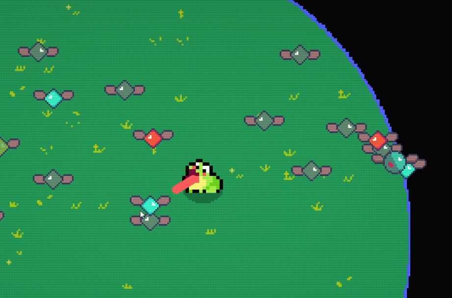 游戏的主角最终设定为一只青蛙,抽象但又带有一点俏皮,所以游戏名称也调整为【青蛙故障乐园】,青蛙可以吐舌头攻击虫子,不过虫子里有bug虫子和非bug虫子,还有特殊虫子等待玩家发现。