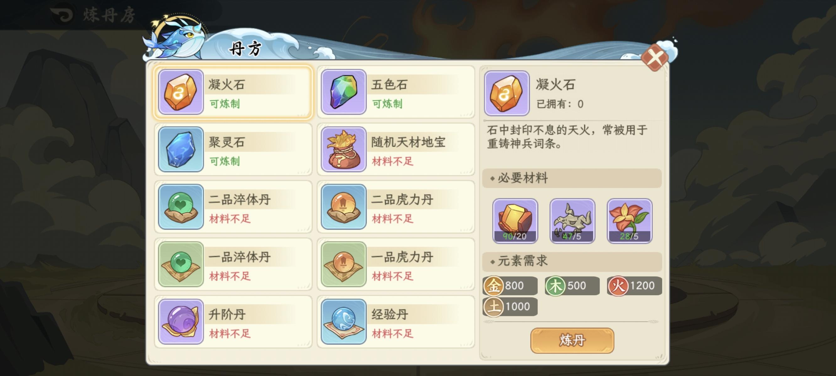 炼丹:五色石和升阶丹有就合,注意添加概率