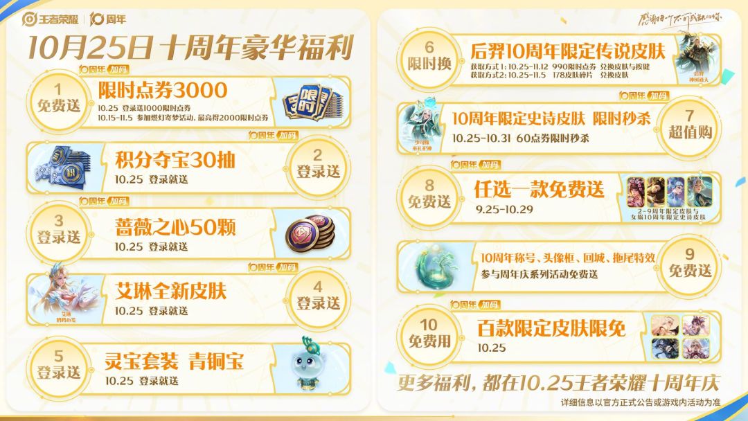更多福利,都在10月25日王者十周年庆~
