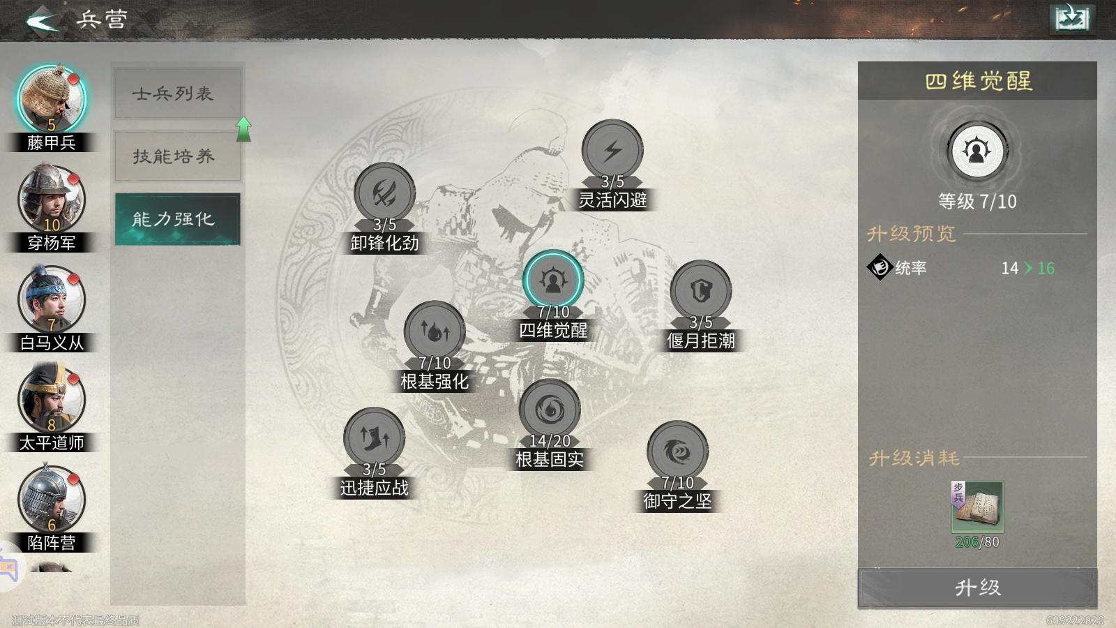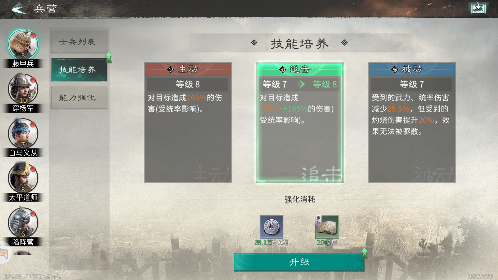 2.士兵培养优先能力强化,因为前期银币比较缺,培养士兵的时候优先拉满一个