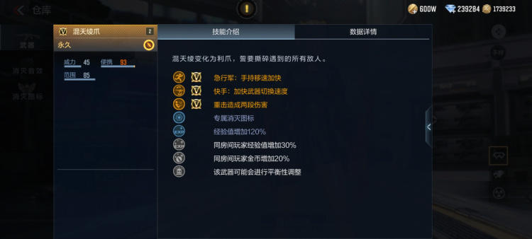 首先我们可以看到在技能方面拥有急行军和快手两个基础技能,但是混天绫爪有意思的点在于,其重击会进行一次特殊的二段攻击。即两只棱爪分别计算一次伤害,在攻击节奏方面完全一致,但是伤害会分两段,所以实战方面还是比较考验玩家的操作水平。