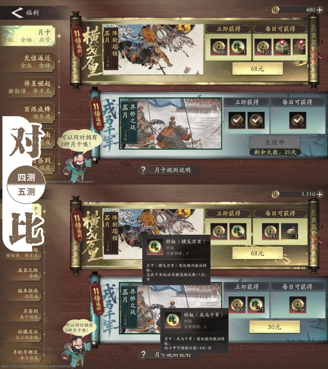 【图文资讯】四测VS五测,月卡、战令对比