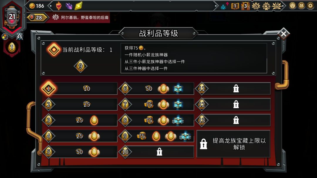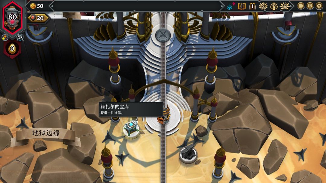 有些强大的首领需要你把该层其他敌人消灭之后才能攻击,并且可能首领还会有狂暴状态,比如第一个强大敌人阿尔基翁,不但可以在各层之间自由移动,敌方单位还有触发能力出现,会在特定回合或者满足特定条件时发动,类似敌人的蓄力技能,需要注意有紫色时间漏斗图标的单位,查看其详细能力,击败强大首领会获得稀有卡包、单位、大型强化神器等等,神器其实就是类似遗物的作用。
