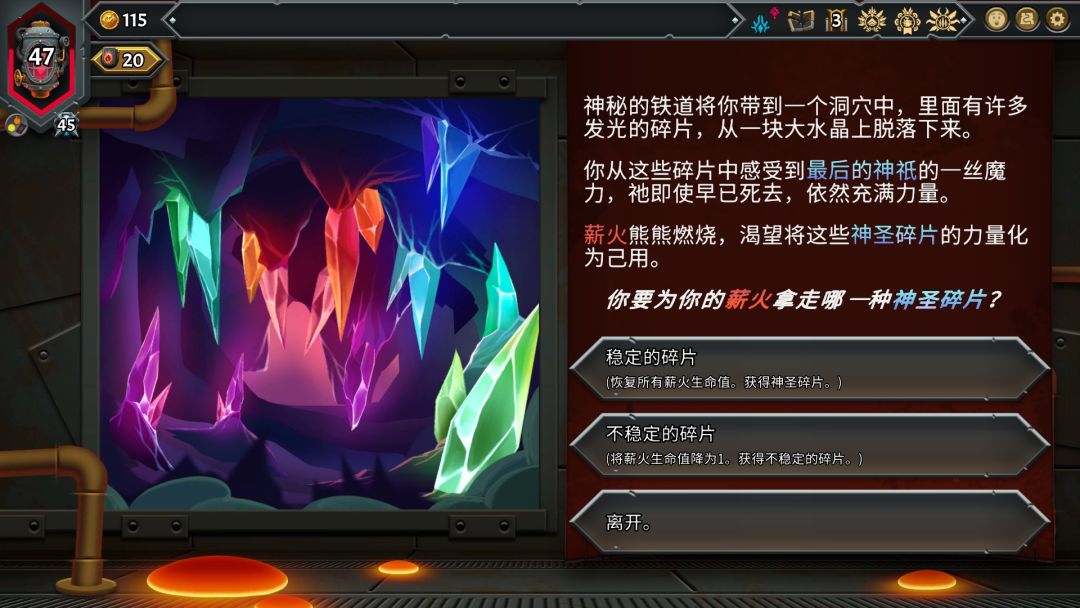 不只是运气,单位氏族的搭配与法术、装备、房间等等各种卡牌的构筑十分有策略性,并且很值得去研究不同氏族的信息,需要通过不断失败来累积等级,获得氏族等级和经验值,提升契约等阶进行挑战,最终构筑属于自己的氏族队伍,尝试不同的组合。而且独特的三层房间设计让战斗变得更加激烈,保护顶层的薪火之心,收集薪火之心随着游戏进程解锁新的机制和剧情,整体可玩性极高而且趣味十足。