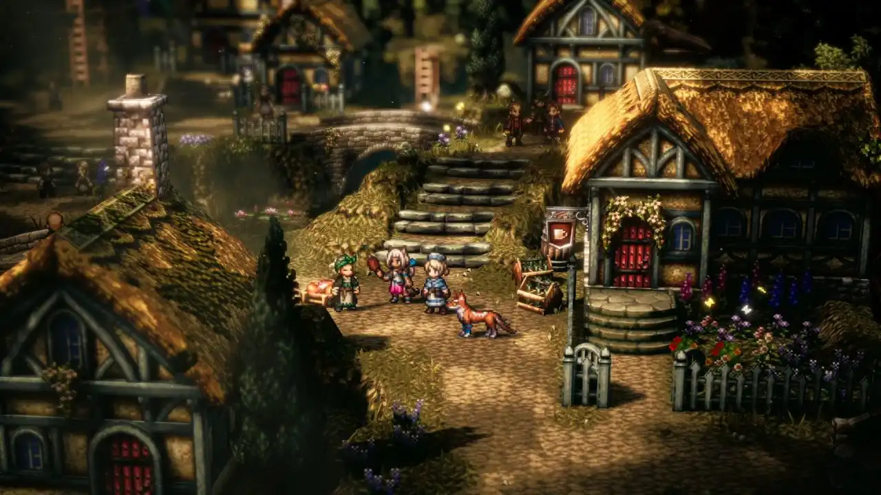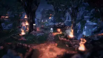 归功于其HD-2D的独特美术风格,即以现代技术将2D像素角色与3D高清场景融合,使像素风同时拥有真实的深度和立体感,造就了八方华丽亮眼的画面。