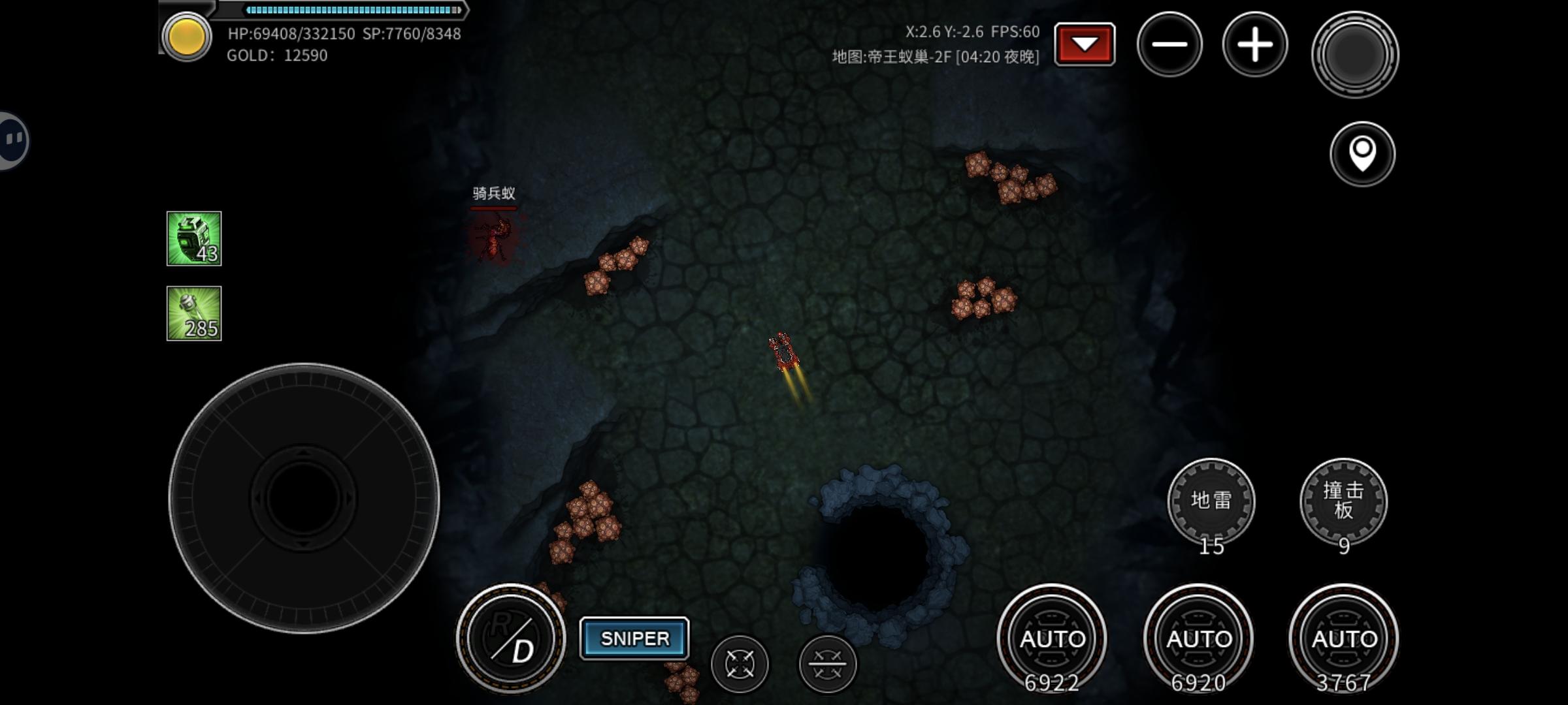【攻略】刚开始在蚁穴四层中间用雷鸟开刷,有系统帮忙的四层1号地图是装备差时刷的地儿,1号往上走是爆弹BOSS,他上面的地儿是2号区,1号区正常刷一次3万金20万经验15个底盘零件,2号区一次6万60万经验23个底盘零件6个副炮零件,再往上是3号区(蚁后B0SS),后期可在3区和2区穿刷,最好锁定一个怪转着打,弹药打没了直接传送回拉卡补充,刷几次就够把生物底盘改10三个副炮改10了,血多不用回甲