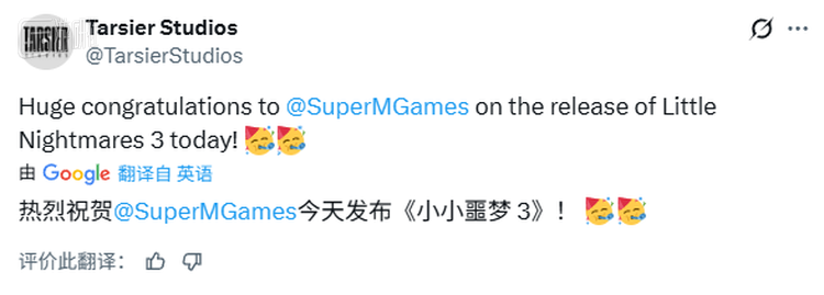 虽然从现在的风评来看,玩家给出的答案是“没有”,但可以看得出来,Tarsier Studios自己对于这个“曾经的孩子”,倒是给出了很高的包容,不仅在游戏上线时发推文祝贺:
