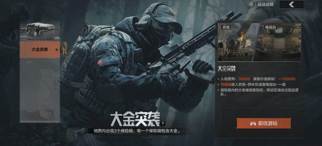 每张地图内将有固定位置的三个保险箱,且有一个保险箱必定包含大金。先锋们可以在准备界面点击地图,自行选择【农场-西半区】或是【电视台-一层】进入。