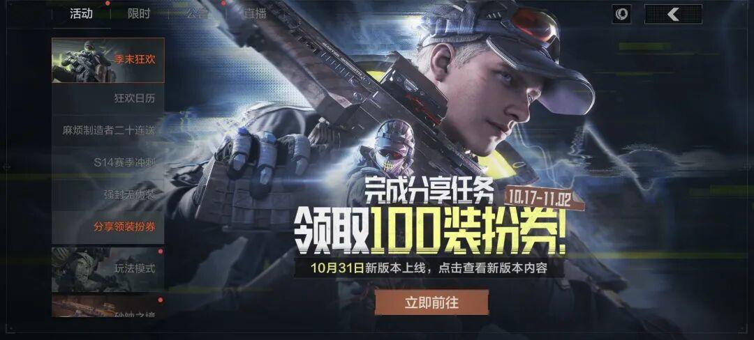 10月17日起:完成累登和活动任务,提前获取全新军需20连抽!