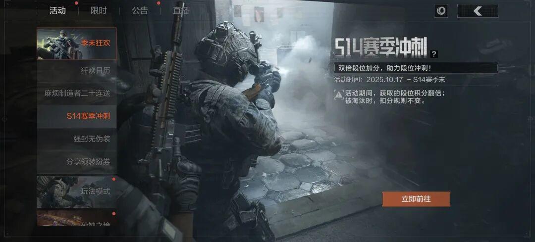 10月17日起,赛季末双倍段位分提前开启!本次季末冲刺活动提前开启,先锋们将有更充足的时间挑战更高段位!
