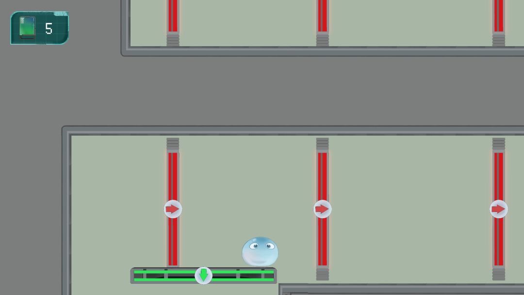 例如,在如图所示的关卡中,实验体需要先乘电梯向上,再向右边通道行进,但在电梯向上运行时,会对实验体造成伤害的激光管持续向左运行,与其需要行进的方向相反,就造成了阻碍。此时就需要实验体在抵达高处后切换机关整体的运行方向,以便顺利通行。