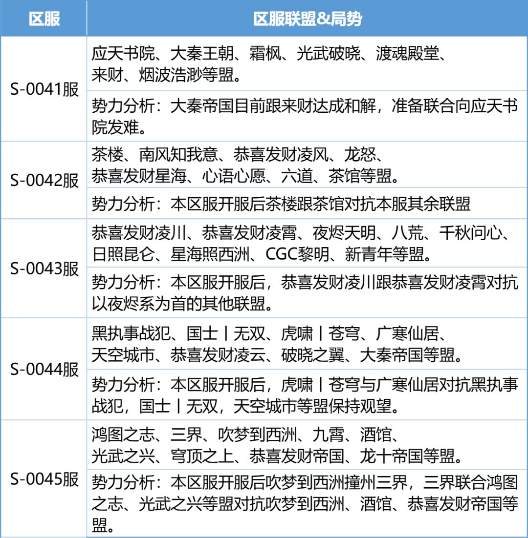 (各服务器联盟情况)