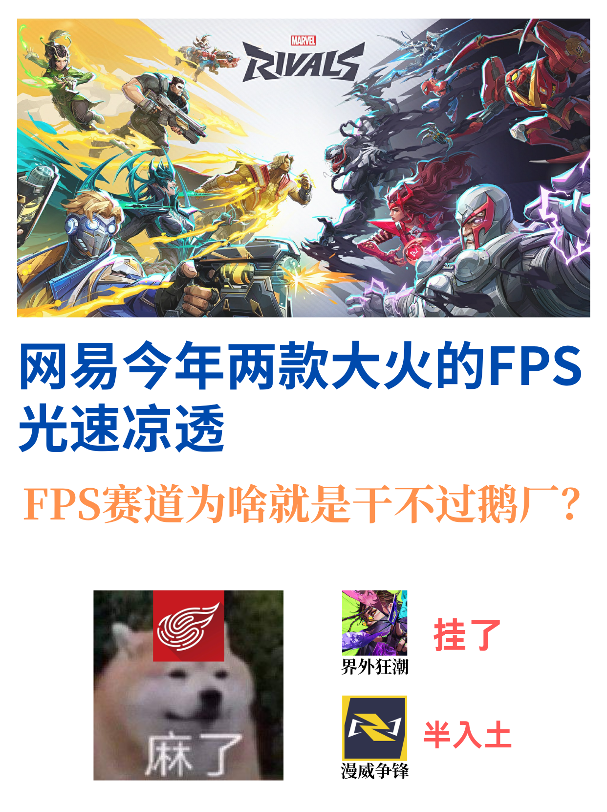 不管是先发优势的荒野行动,萤火突击,还是没有竞争对手的漫威争锋,哪怕做的再好,都是高开低走。