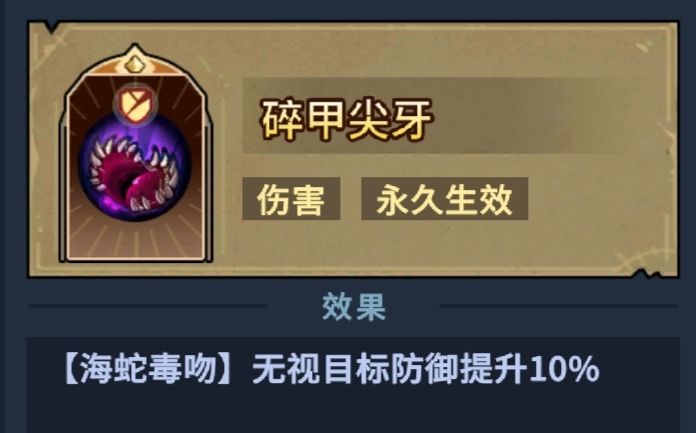 选了这个之后, [海蛇毒吻] 的无视防御来到60%,配合装备词条27%+腐蚀两件套25%,达到60+27+25=112%,成功吃满无视防御,每一个海蛇毒吻都是真实伤害。
