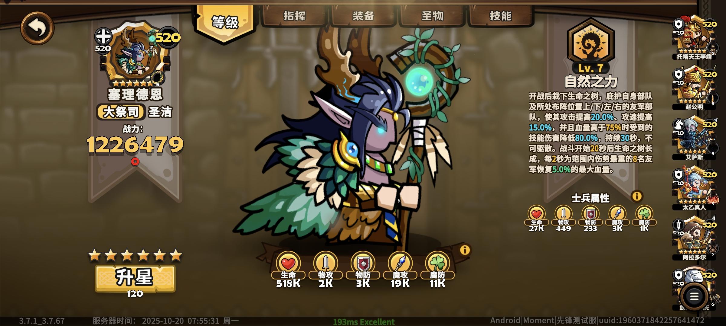 塞理德恩是小十字光环,仅上下左右4个单位,但有非常强力的攻速及攻击加成,4圣效果翻倍,40%攻和30%攻速,血量多时会降低技伤,增益效果没得说,不过只能持续30秒,后续转为光环牧回血,算是7人池的排面之一。