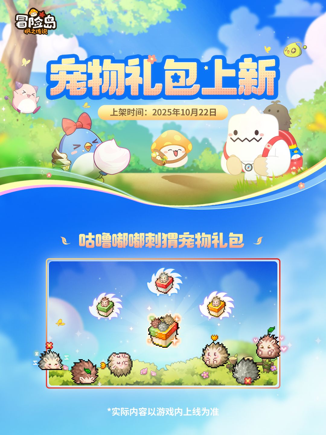 岛上迎来了一些新的圆滚滚可爱朋友——「咕噜嘟嘟刺猬」宠物礼包来袭!