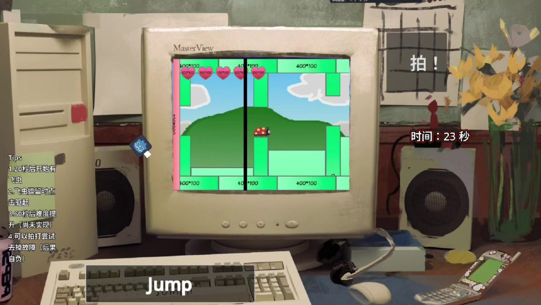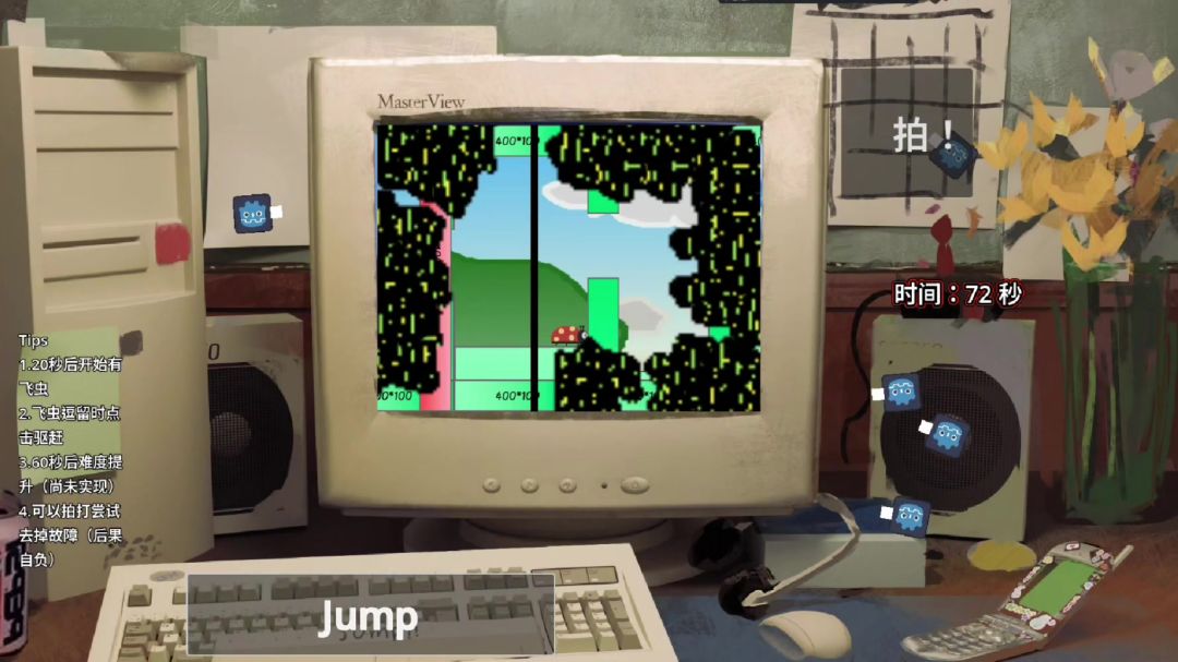 根据计划屏幕外的部分实现了飞虫的逗留、飞入屏幕、驱赶离开的逻辑和表现,还有拍打屏幕清除故障的小功能(但是有可能会拍坏屏幕