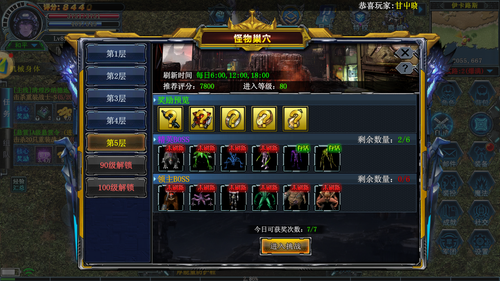 2. 怪物巢穴(等级≥40 级,每日 6 次挑战机会)