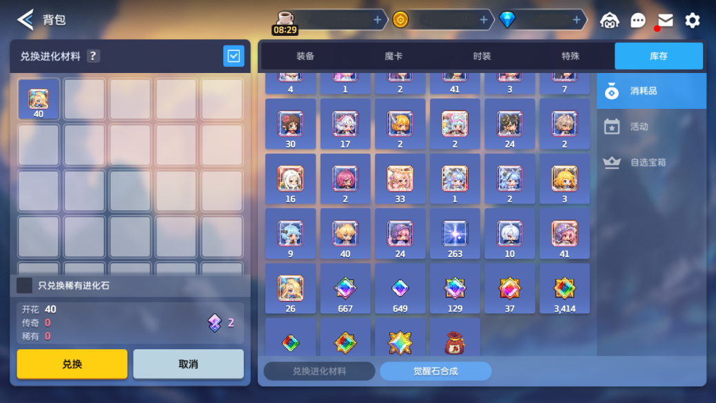 2)梦幻进化石&梦幻开花石,兑换英雄进化石&英雄开花石比例如下