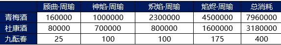 一共需要:青梅酒*840W、杜康酒*350W、九酝春*385