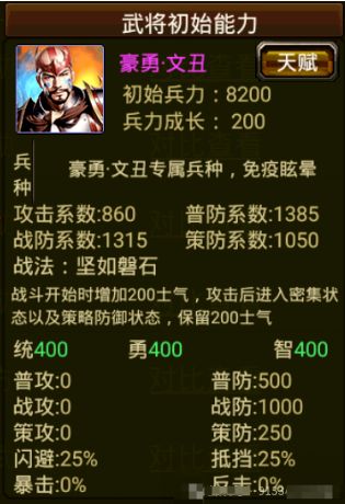 攻防属性和三围属性并没有特别突出,这里田丰的三围是包括了文丑提供的30点;不过田丰的亮点在于特殊效果,接下来对比一下功能。