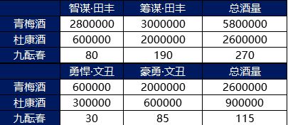 🍶所需酒资源对比