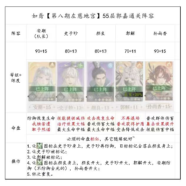 如鸢『第八期左慈地宫』55层郭嘉三星阵容