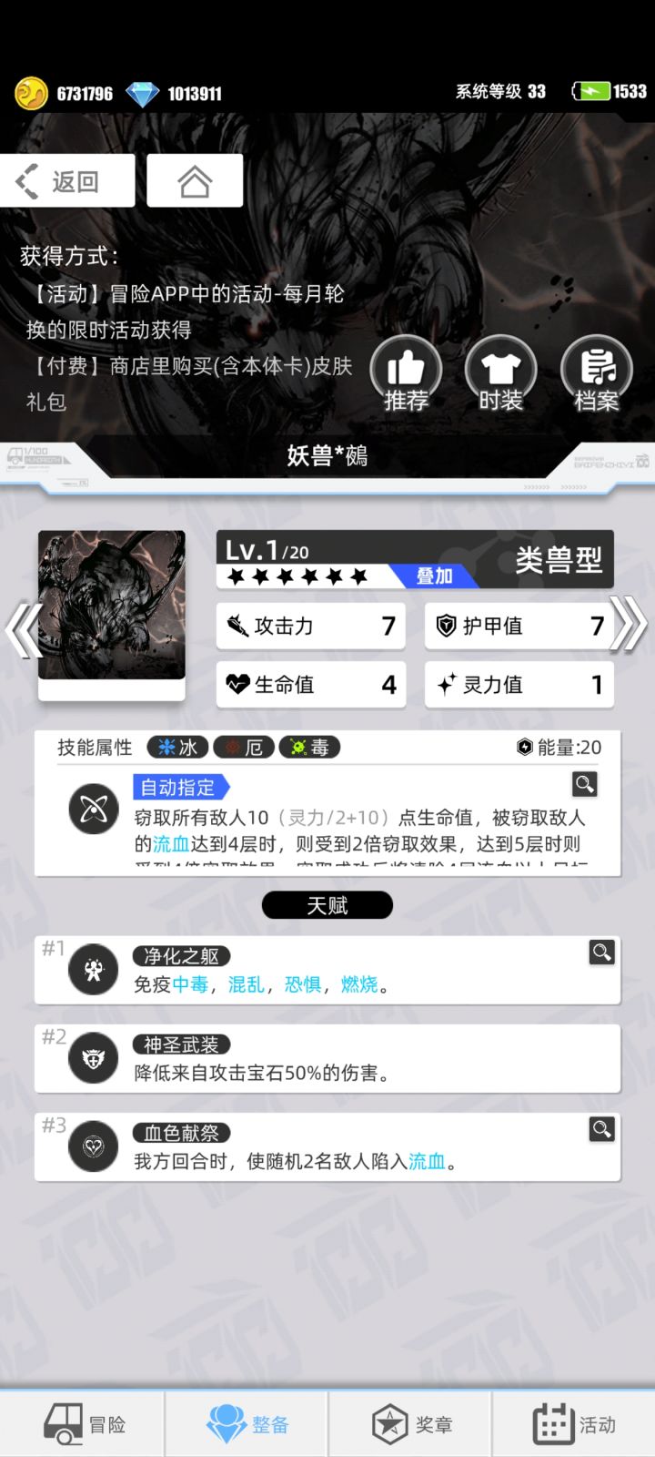 许愿游戏六星卡牌:妖兽*鵺