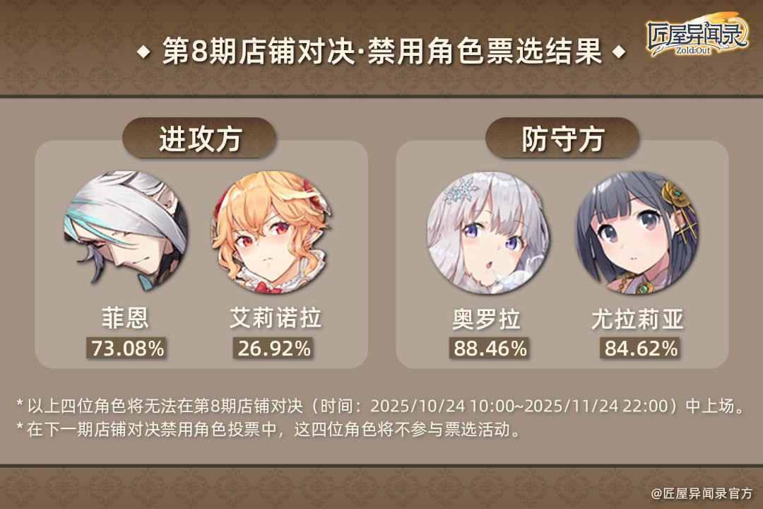 第8期店铺对决禁用角色票选活动已截止,投票结果新鲜出炉啦~
