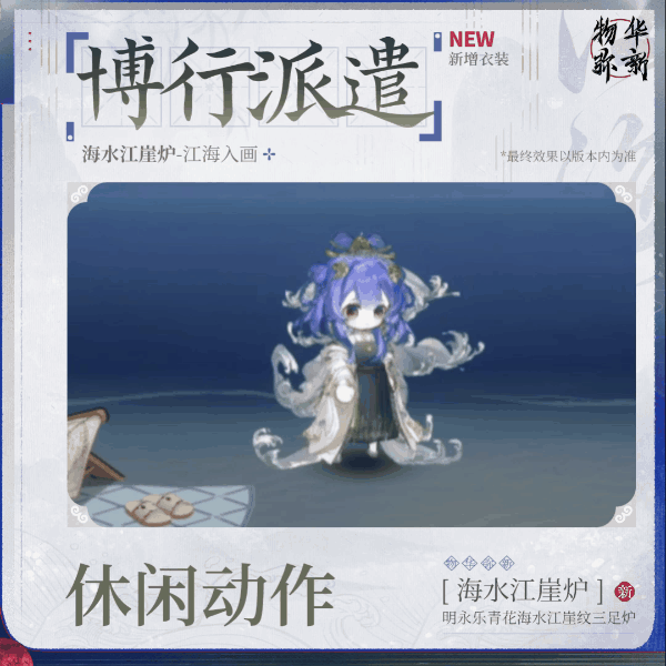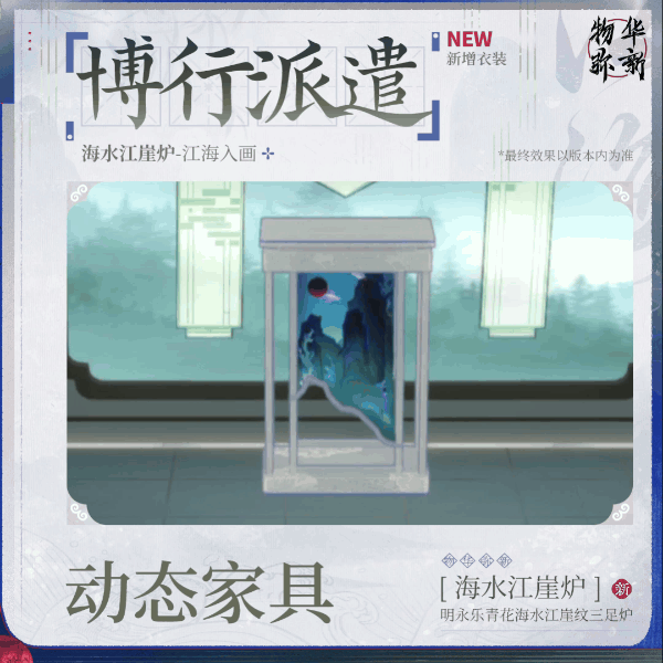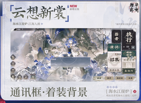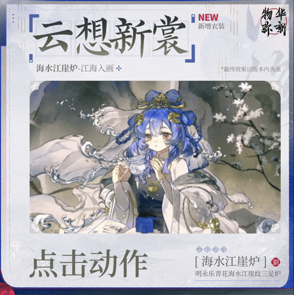 ※ 购买「江海入画」礼包,即可拥有海水江崖炉云想新裳系列衣装「江海入画」、动态家具、动态头像和通讯框。