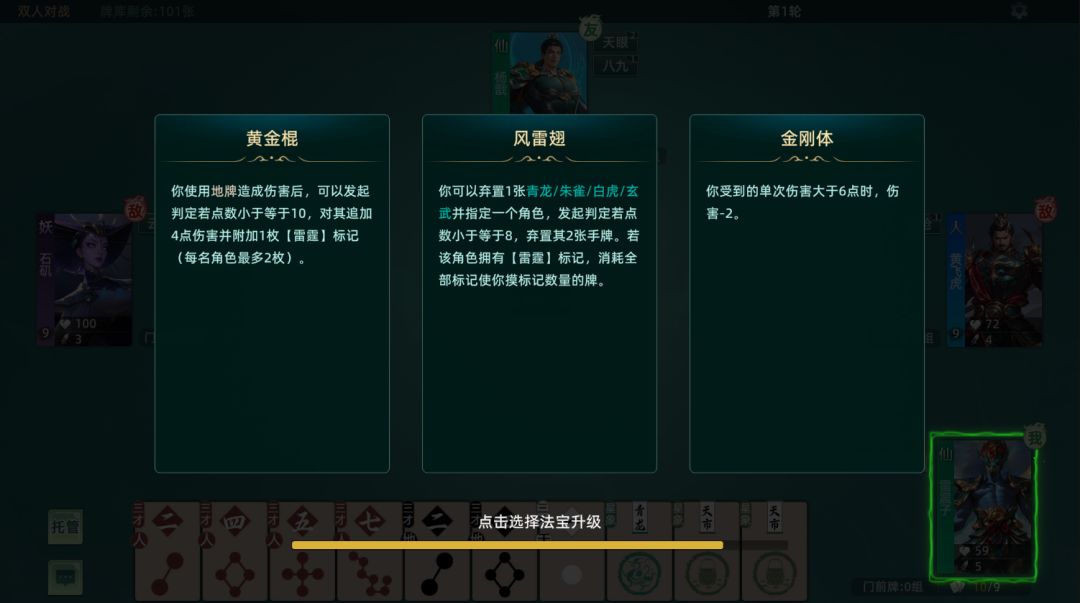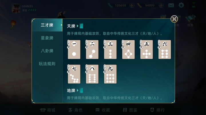 进攻三才牌+星象牌与八卦牌结合,玩家需要运用角色的法宝策略结合进攻牌组来击败对手随机试炼玩法诚邀各位仙友来体验。