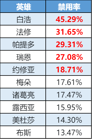 禁用率榜-美杜莎新晋上榜,梅朵禁用率上升